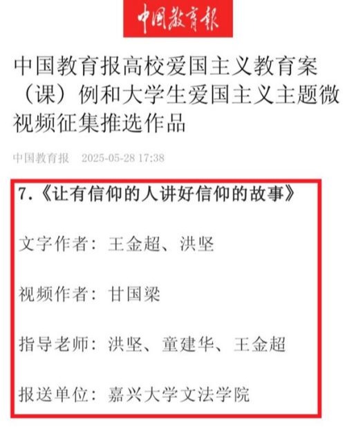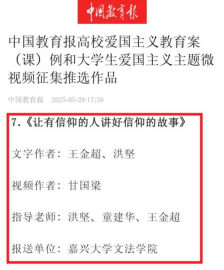 《让有信仰的人讲好信仰的故事》入选《中国教育报》高校爱国主义教育案例