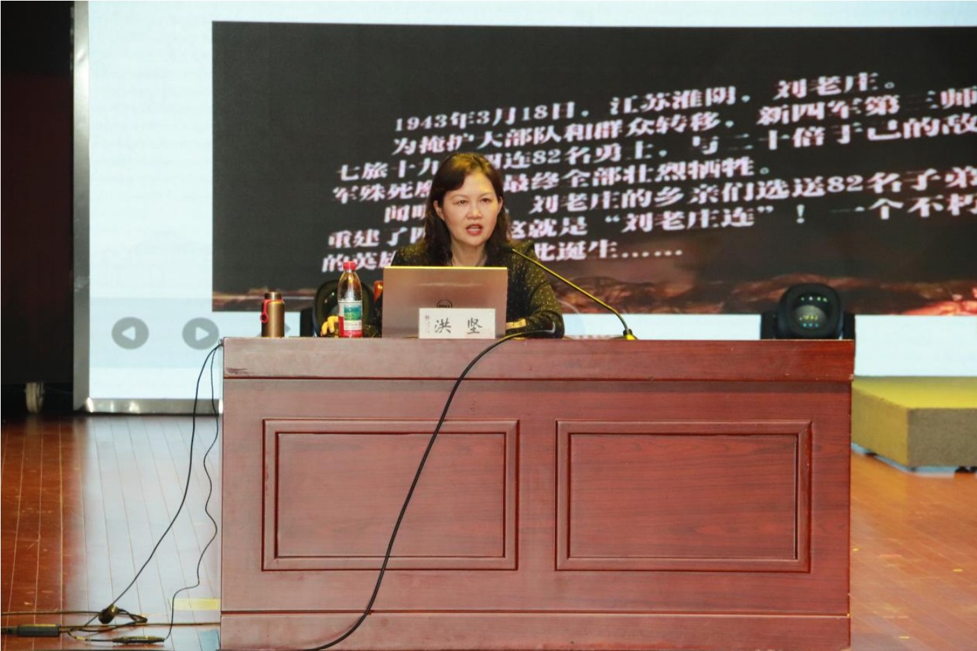 演出开始前,嘉兴大学工会常务副主席、话剧《初心》总策划洪坚教授以“红船铸魂 《初心》育人”为主题,分享了学校在思政教育创新方面的探索与实践。她深情回顾了《初心》话剧自创作以来的点滴历程,强调通过青年师生喜闻乐见的艺术形式讲好党的故事,是以文化人、以文育人的有效路径。她表示,希望《初心》不仅能打动观众,更能启发一线思政教师,为课堂教学注入更多温度与活力。真挚动情的讲述赢得了现场阵阵掌声,引发广泛共鸣。